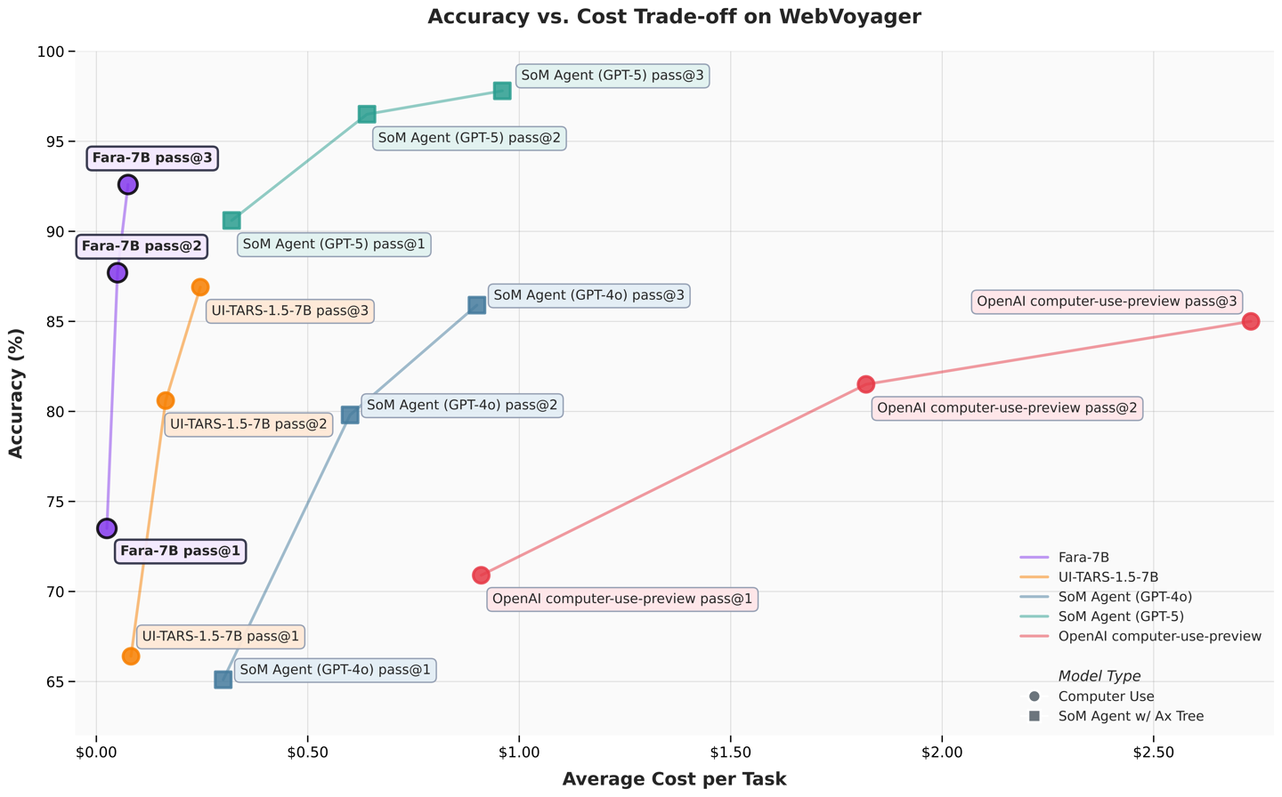 11月24日,微软宣布推出全新的开源小型语言模型Fara-7B,专为计算机操作设计,能够通过鼠标和键盘执行网页任务。该模型由70亿参数构成,在同级体量中性能领先,且能在设备端本地运行,降低延迟并增强隐私保护。Fara-7B不依赖文本交互,而是通过视觉解析网页截图执行点击、输入等动作,无需额外的可访问性树或多模型协作。微软为此构建了全新的合成数据生成流程,模拟复杂多步骤网页任务,基于真实用户需求和网页,涵盖任务生成、求解及验证三个阶段,用于训练模型的数据包括14.5万条任务轨迹、100万步骤。