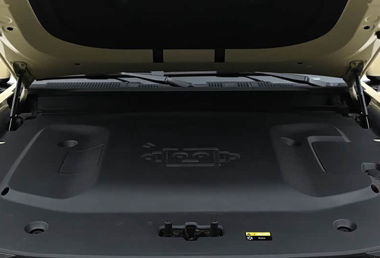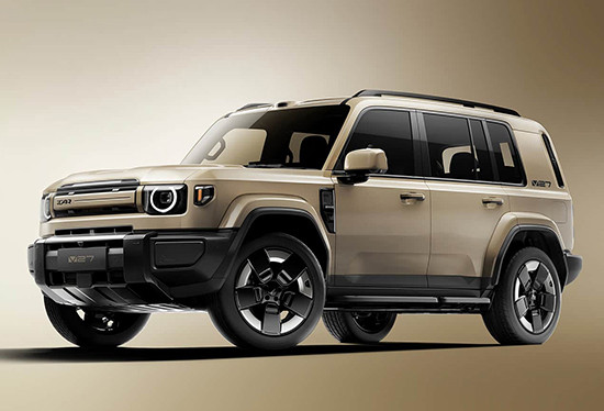 外观方面,新车采用全新设计语言,在融入诸多经典硬派越野车元素的同时,也展现出更具未来感的视觉风格。窄条幅式前格栅搭配方形灯腔与环形灯带组合,造型极具辨识度;前包围处大尺寸黑色护板进一步强化越野气质,使整车看上去力量感十足。