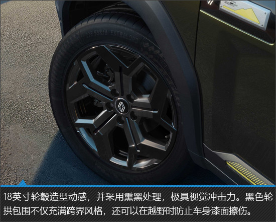 新车外观采用前卫硬朗的设计风格,灵动有力的线条刻画出肌肉感十足的轮廓,符合追求潮流个性的年轻消费者审美。银色的前后护杠,搭配熏黑门柱和黑色轮拱包围,则凸显出与众不同的跨界风格。不论穿梭在城市的楼宇之间,亦或是行驶在户外的非铺装路面,它都能成为一道靓丽风景线。