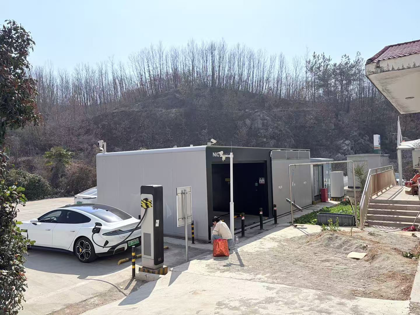 换电站旁的充电桩 图片来源:时代周报记者摄 在G4河北省、河南省以及G55河南省、湖北省等多个服务区内,往年仅有1-2个充电站,充电桩数量约8-10个。但在今年,不少服务区的充电站数量达到甚至超过了3个,单个服务区合计充电桩数量猛增到了20个以上。 服务区充电站的背后玩家也日渐丰富,其品牌由国家电网、特来电、星星充电等传统全国性电力设施公司,延伸至理想汽车、蔚来等车企以及当地本土电力设施企业。这些充电站品牌大多相互兼容、开放,极大提高了新能源汽车的充电效率。 “今年排队没往年那么久,有些服务区甚至不用排队。”多位新能源车主对记者说,其中大多车主单次充电时长降到了20-50分钟。如果能够使用快充功能,车辆充电时长能缩短到30分钟内。 整体来看,超快充的普及和充电设施的增多有效提高了新能源车主春节出行效率,平均充电时长为30分钟上下。但在G4等国家干线高速的热门服务区里,高峰时刻依旧可能出现排队充电的情况。 换电一定比充电快吗? 在超快充之外,换电也起到了一定补充作用,甚至大多时候比充电还快。 时代周报记者在多条高速公路沿线发现,以蔚来为主的品牌已在不少干线高速服务区建设了换电站,单座换电站内电池数量约在6-16块。在平峰期,蔚来旗下车型更换一块电池最快只需要不到4分钟。 如在2月12日春节假期前夕,在G4石家庄东服务区(澳门方向)内,蔚来换电站内共有16块可用电池,一辆蔚来汽车仅用时3分17秒就更换了电池。同日在G55四棵树服务区(广州方向)的换电站内,车辆更换电池也仅需几分钟。 “如果站内电池充足,换电会比充电快很多。”几位换电的蔚来车主说,但如果遇到春节出行高峰,16块电池也不一定够用。 在2月15日(春节假日首日)下午1点50分,同样是在G4石家庄东服务区内,16块电池仅有1块可用,其余15块都处于站内充电状态,大多电池需要充电60分钟才能使用。彼时据蔚来APP显示,站内有2人在排队等待电池。