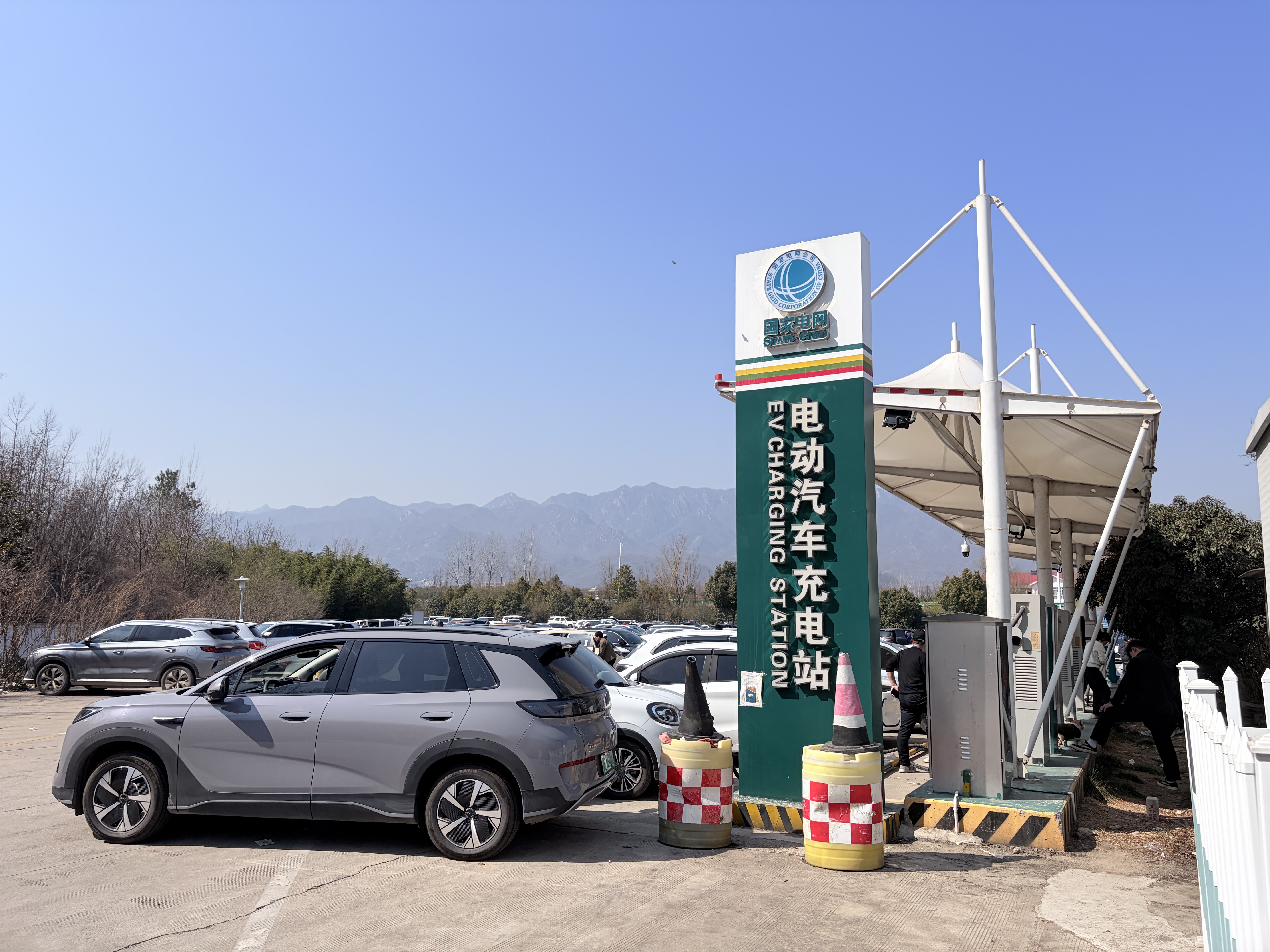 2月12日,在G4石家庄东服务区(澳门方向)换电的蔚来汽车 图片来源:时代周报记者摄 新能源汽车渗透率和保有量的提高,使得电动汽车成为公路出行常客。在今年春节期间,全国各地高速路段新能源汽车的身影也越来越多,春节出行高峰新能源汽车排队充电的景象再度在多个高速路段上演。 时代周报记者春节期间在G4京港澳高速、G55二广高速等多个高速路段服务区里看到,在2月15日、2月22日前后春节高峰时段,不少服务区充电区域被充电车辆占满,还有车辆在外围等候充电。 不少车主对记者感叹道,希望车辆充电能和加油一样快,事实上这也是行业的努力方向。相较于上一年,不少服务区里新建了“超充站”、“快充站”等高速充电站,能将车辆充电时间缩短数十分钟,服务区里充电站、充电桩的数量也明显增多。 新能源汽车换电站的效率更高。时代周报记者在G4石家庄东服务区(澳门方向)等地记录到的多个换电案例中,车辆最快只需要约4分钟就能更换电池、重新出发。不过这属于最佳工况,在不少情况下,高峰期车辆换电也需要等一会。 高速充电时间缩短至30分钟上下 春运期间新能源车主长途出行往往是个难题。据时代周报记者2024年、2025年春运出行观察,当时高速公路上纯电车型仍属少数。 在2026年春节高峰记者往返2000公里的高速途中,比亚迪、特斯拉、理想汽车、蔚来等品牌纯电车型在高速路段的能见度大幅提高。这一方面得益于2025年我国新能源汽车渗透率和保有量的提升,另一方面今年春节期间我国大部分地区回暖,利于新能源汽车出行。