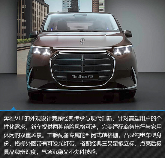整体来看,奔驰VLE立足品牌经典豪华底蕴,将纯电专属的科技设计与MPV的优雅大气相融,兼顾商务端庄气场与家用温润质感,细节之处兼顾颜值、实用性与空气动力学表现,尽显高端纯电MPV的格调与匠心。