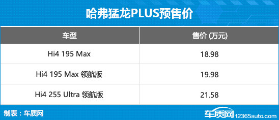 4月18日,哈弗猛龙PLUS正式开启预售,预售价18.98-21.58万元。新车定位新能源全场景方盒子SUV,基于Hi4智能电混四驱系统打造,主打兼顾城市通勤与轻越野出行的用车需求。