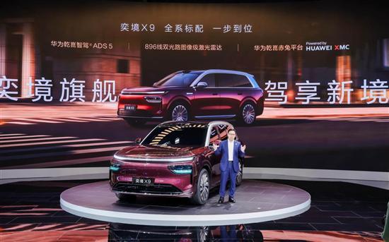华为智能汽车解决方案BU CEO靳玉志现场发布奕境X9系列产品尖点,新车将全系搭载华为乾��ADS 5,全系标配华为乾��896线激光雷达,让每一个家庭都能享受最顶尖的科技!其次,全系标配基于HUAWEI XMC乾��数字底盘引擎赋能的赤兔平台,结合百万级豪车才有的全铝底盘,搭配欧洲大师团队调校,将驾乘体验直接提升一个量级,完全不输超百万的旗舰SUV。