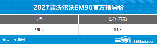 4月24日,在2026北京车展上,2027款沃尔沃EM90正式上市,此次共推出1款车型,官方指导价81.8万元,限时置换感恩价59.8万元。