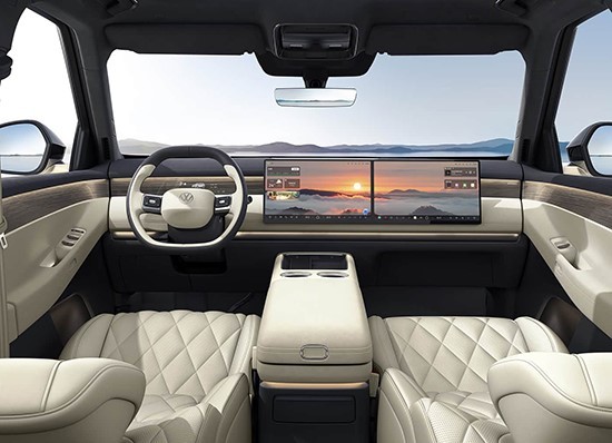 内饰整体简约轻奢、舒适大气,配备15.6英寸中控屏、8.88英寸仪表屏,显示效果清晰细腻;15.6英寸副驾娱乐屏为前排乘客带来专属影音体验。车机搭载高通骁龙8295芯片,运行响应迅速,支持多类手机互联功能。全新升级的VW OS车载智能系统界面简洁流畅,语音交互灵敏,可通过语音控制多项车载功能。