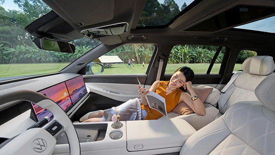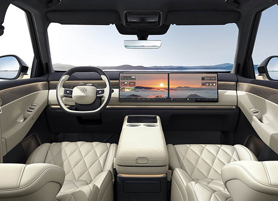 内饰整体简约轻奢、舒适大气,配备15.6英寸中控屏、8.88英寸仪表屏,显示效果清晰细腻;15.6英寸副驾娱乐屏为前排乘客带来专属影音体验。车机搭载高通骁龙8295芯片,运行响应迅速,支持多类手机互联功能。全新升级的VW OS车载智能系统界面简洁流畅,语音交互灵敏,可通过语音控制多项车载功能。