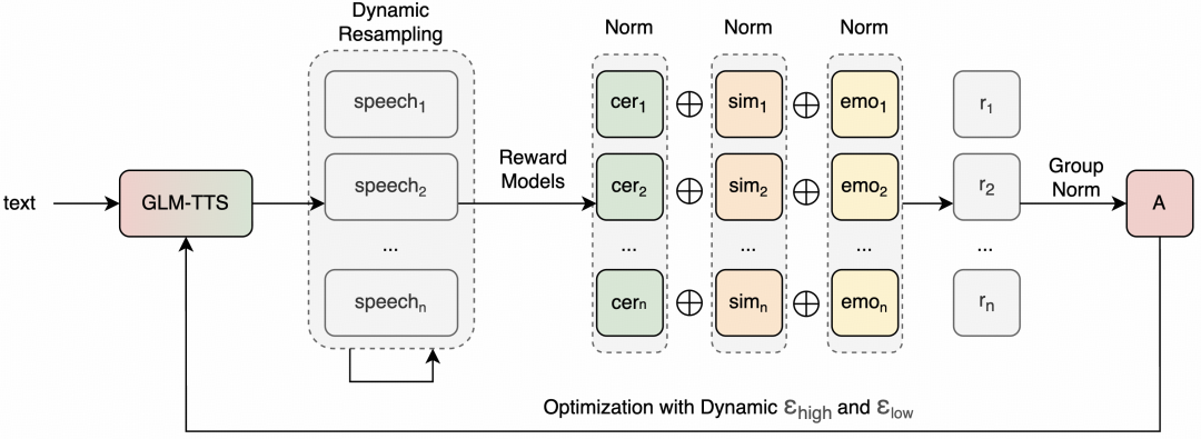 智谱今日发布工业级语音合成系统GLM-TTS,并在HuggingFace和ModelScope上开放模型权重。该系统仅需3秒语音样本即可学习说话人的音色和说话习惯,适用于通用朗读、情感配音等多个场景,实现自然流畅、贴近真人的语音效果。GLM-TTS采用两阶段生成架构,并引入基于GRPO的强化学习方案,在字错误率和情感表达上取得开源SOTA表现。该系统仅使用10万小时训练数据,远低于行业主流商用模型,同时兼顾训练成本和效果,预训练仅需单机4天即可达到开源SOTA水平。