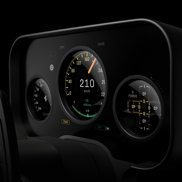 新车行业首发彩色E-Ink墨水屏钥匙,当钥匙放入中控台后,屏幕颜色会由黄色为主变为黑色为主,仪表盘和屏幕同时点亮,自动解锁档位。换挡机构保留了小型机械档把,中控屏幕带有球形转轴,可自由朝向驾驶员/副驾驶,配备掌托,右侧带有球形多功能表。仪表盘采用数字和机械仪表组合的多层显示,表底时速为320km/h。车内顶部控制区域设有实体拉动装置,可启动车辆弹射模式。按照法拉利官方规划,车辆外观将于今年5月份对外展示。