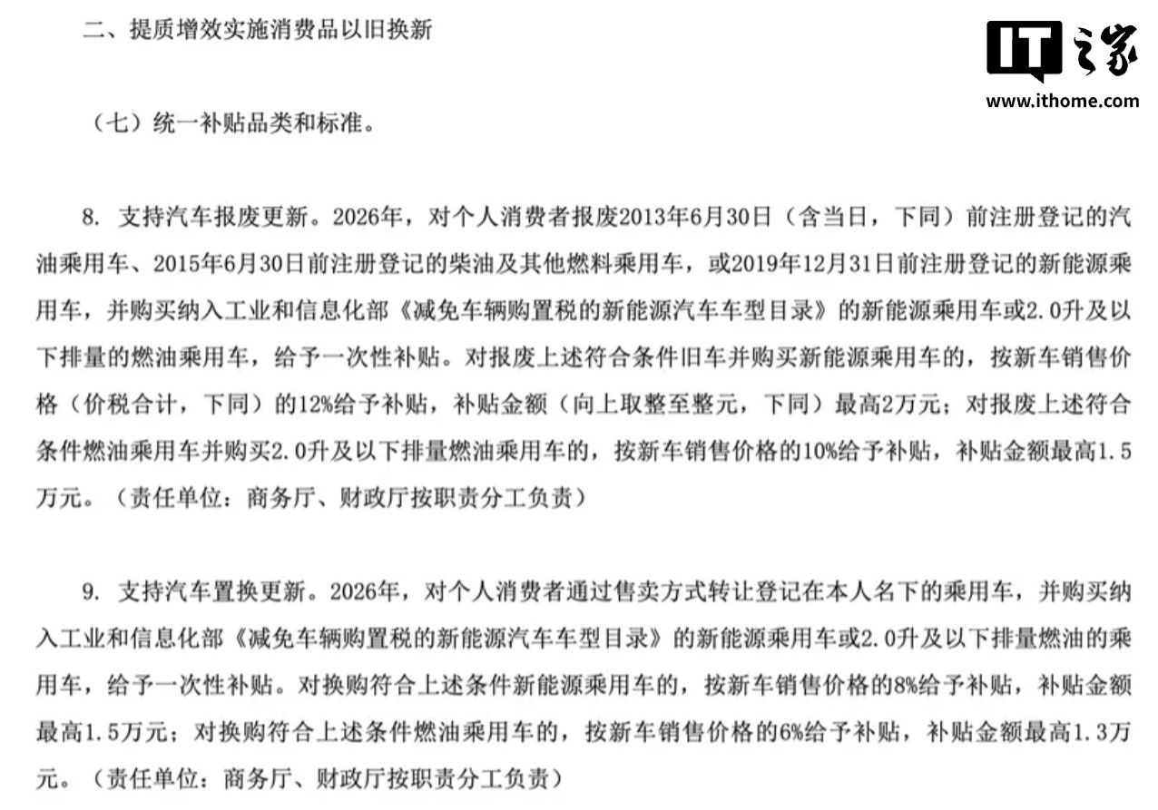 近日,四川省发改委和财政厅联合发布了《四川省2026年实施大规模设备更新和消费品以旧换新政策措施》。根据通知,四川省将对符合条件的购车用户提供最高1.5万元的