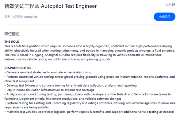 更早之前,特斯拉上海曾招聘过“智驾功能安全测试师”岗位,需要合作开发和验证Autopilot性能,也要求跟踪国内