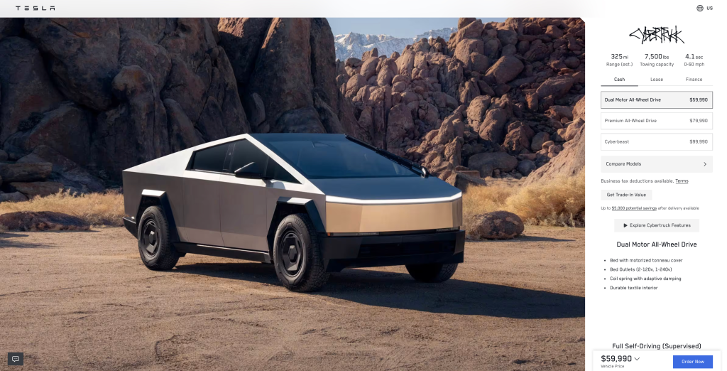 同时,顶配车型Cyberbeast“野兽版”的价格从114,990美元下调至99,990美元,恢复到去年8月涨价前的水平。特斯拉似乎已停止为该车型提供包含FSD(监督版)和免费充电权益的“Luxe Package”豪华套件。数据显示,Cybertruck的实际销量远未达到