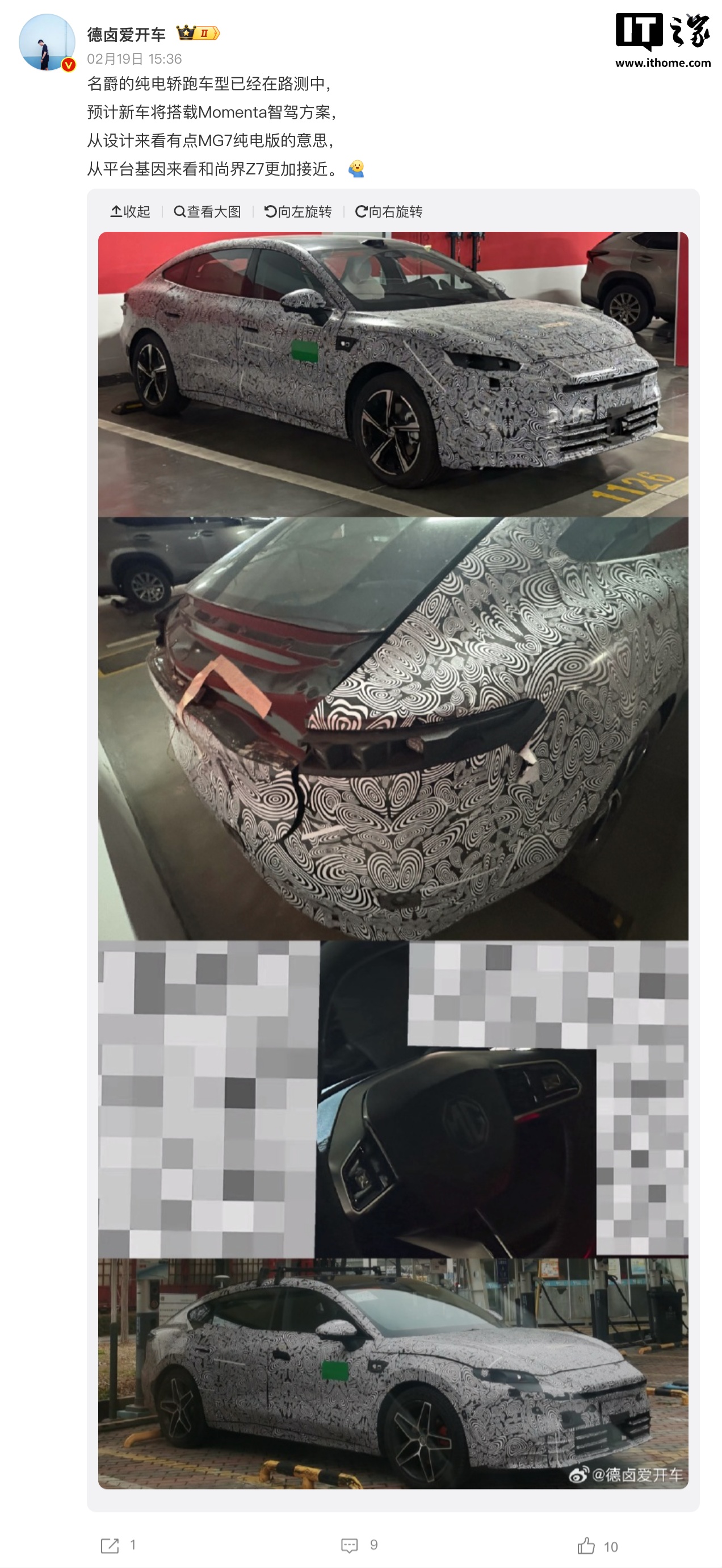 日前,博主@德卤爱开车曝光了一组上汽名爵全新轿车的谍照。新车外观充满运动感,侧面线条流畅,采用溜背式设计,并配备车顶激光雷达和半隐藏门把手。据透露,新车预计搭载Momenta智驾方案,与尚界Z7在平台基因上更为接近。