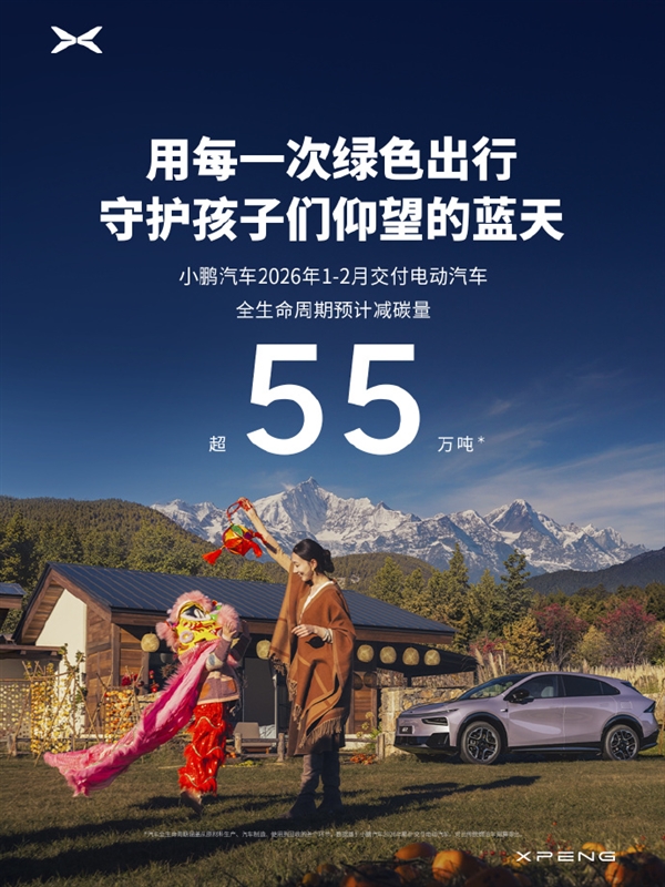 小鹏汽车今日公布2026年2月交付成绩,共交付新车15256台。今年1-2月交付的车辆预计全生命周期可减少碳排放约55万吨,相当于916万棵中等树苗10年的固碳量。3月2日,小鹏汽车将在广州举办"THEFUTURE第二代VLA媒体体验日",第二代VLA将于3月开启推送。同时,2026款小鹏X9纯电版将于3月2日正式上市。