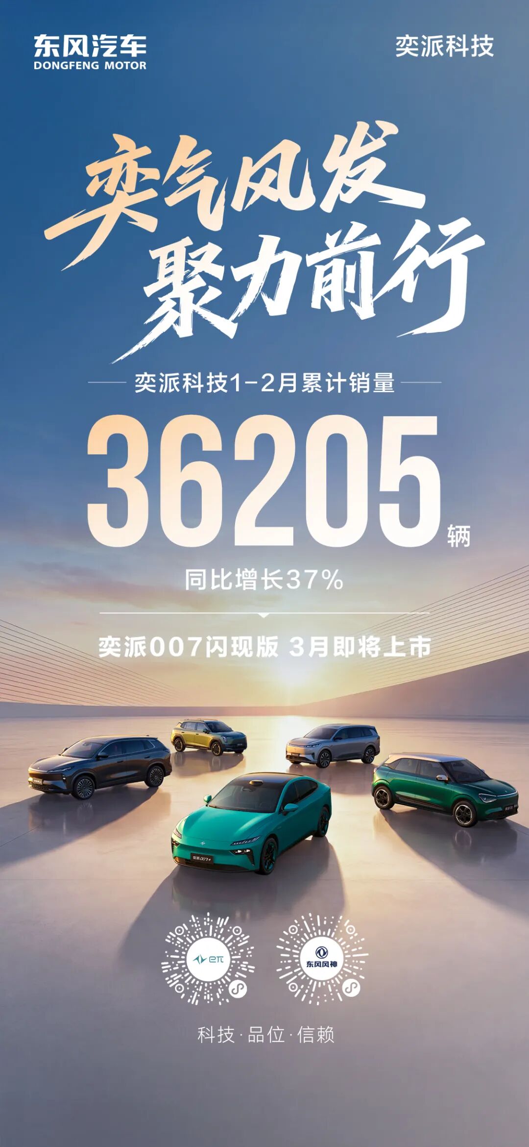 3月1日,奕派科技公布了其1-2月累计销量数据,共计36205辆,同比增长37%。公司官方还宣布了奕派007闪现版将于3月上市的消息。根据IT之家查询的数据,东风奕派科技2026年1月的销量达到了21269辆,同比增长145%。基于这一数据,可以推算出东风奕派科技2026年2月的销量为14,936辆。