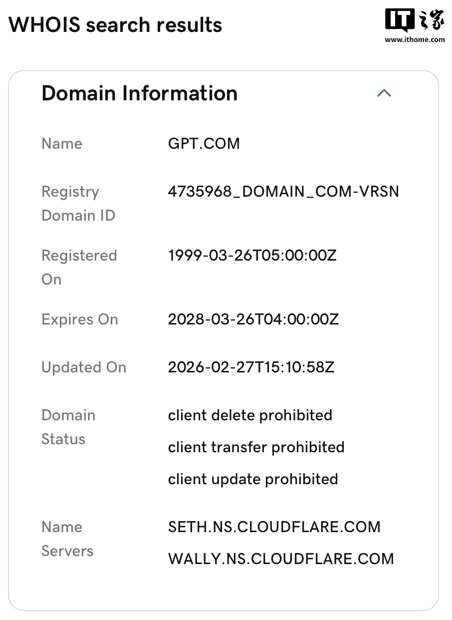 3月2日,据最新报道,OpenAI可能已经收购了GPT.com域名。用户访问GPT.com时,页面会被自动重定向至ChatGPT.com。这一动作与OpenAI去年收购C
