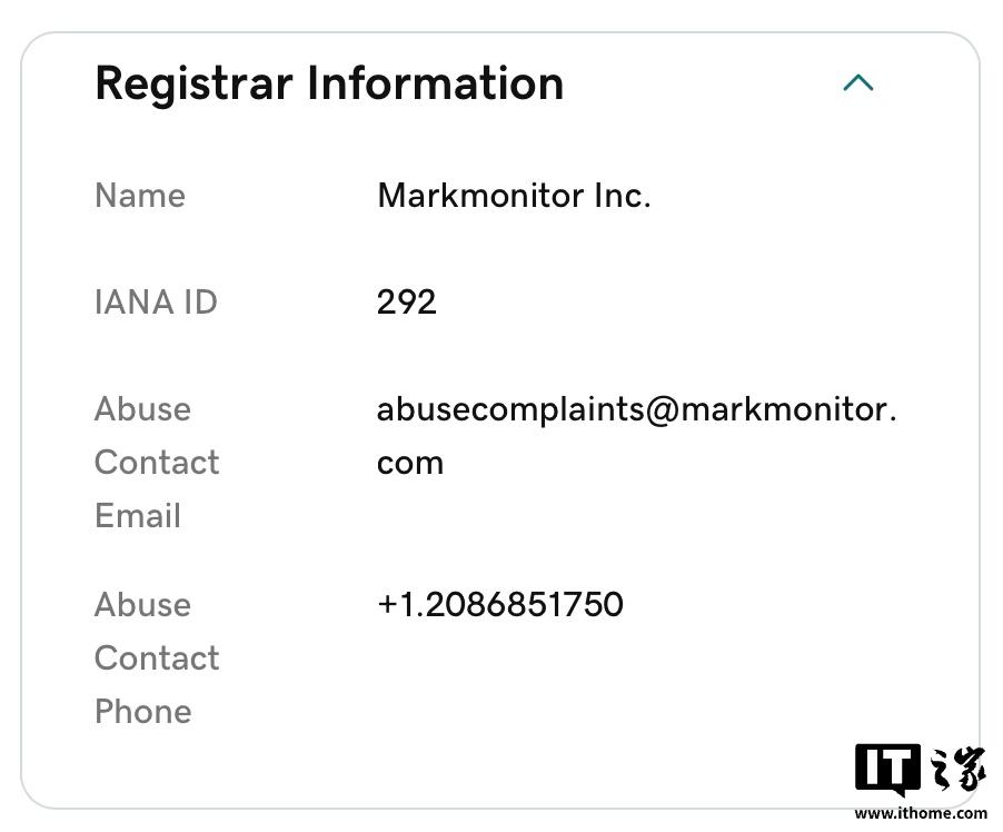 网页链接并将其重定向至ChatGPT官网的行为相似。尽管GPT.com目前注册在MarkMonitor旗下的DNStination Inc.,但由于注册信息保密,我们无法确定该域名是否确实归OpenAI所有。