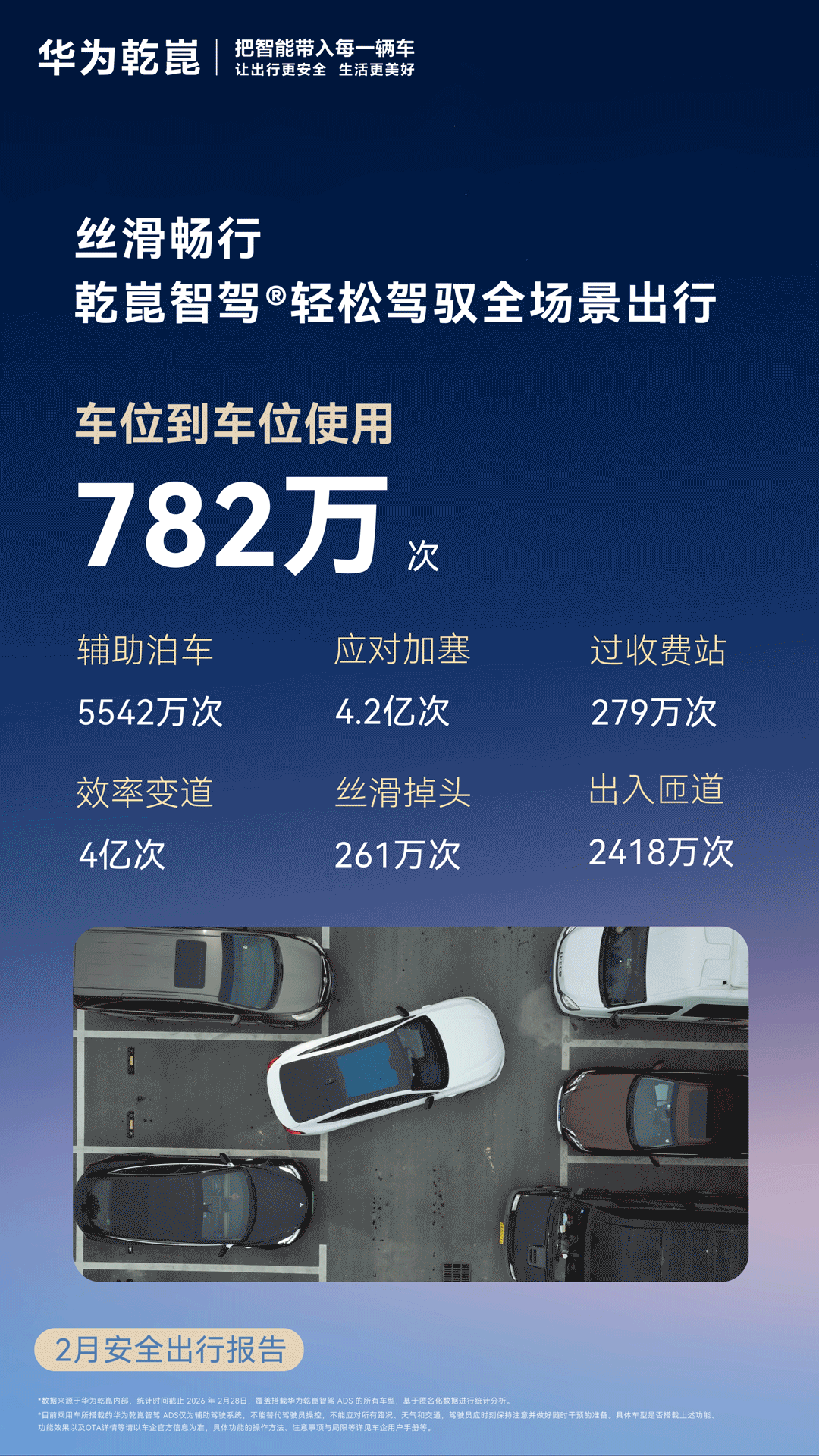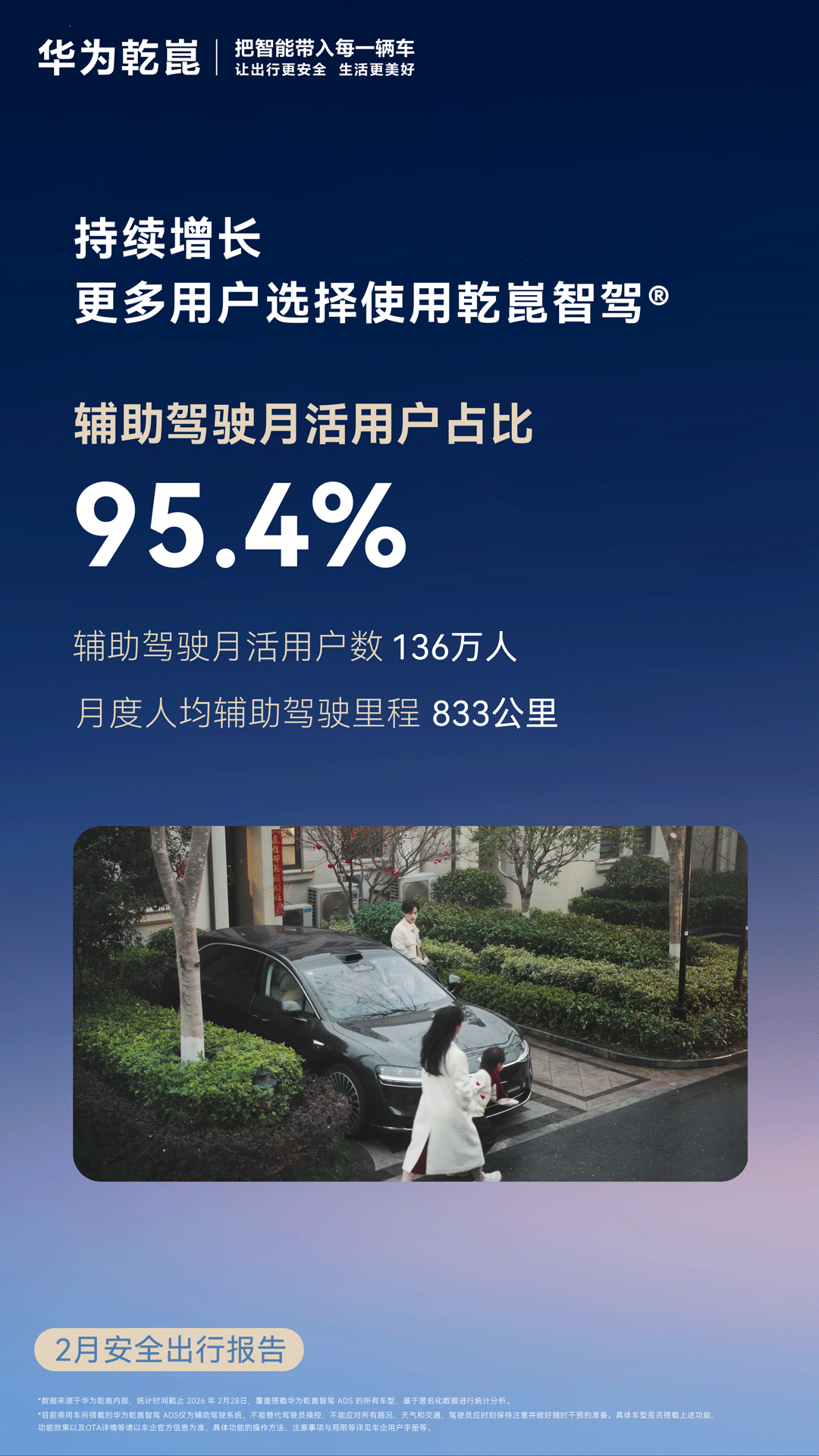 3月3日,华为智能汽车解决方案BU CEO靳玉志发布了华为乾崑2月安全出行报告。报告指出,华为乾崑智驾累计辅助驾驶里程已超过87亿公里,月活跃用户数量达到136万,占总用户的95.4%。车位到车位功能累计使用次数超过4000万次,单月主动避免可能的碰撞次数达到32.7万次。