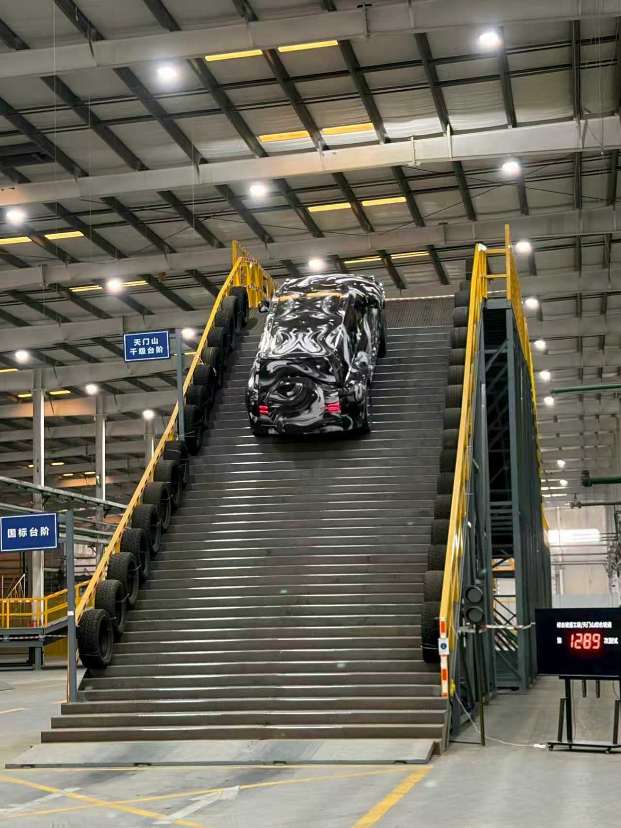 今日,比亚迪宣布将于2026年3月5日举行技术发布会,届时将发布2026款仰望U7、U8、U8L车型。一段神秘车辆测试路透视频近日流出,视频中一辆覆盖伪装膜的车型在模拟“天门山千级台阶”的测试场地完成爬坡。场地标识显示台阶高度约15-20厘米,进深约25-30厘米,坡度超35度。视频画面中标注“第1289次测试”,该车型爬坡过程表现平稳。