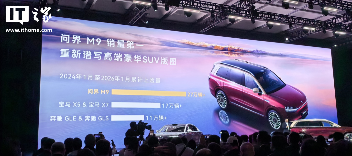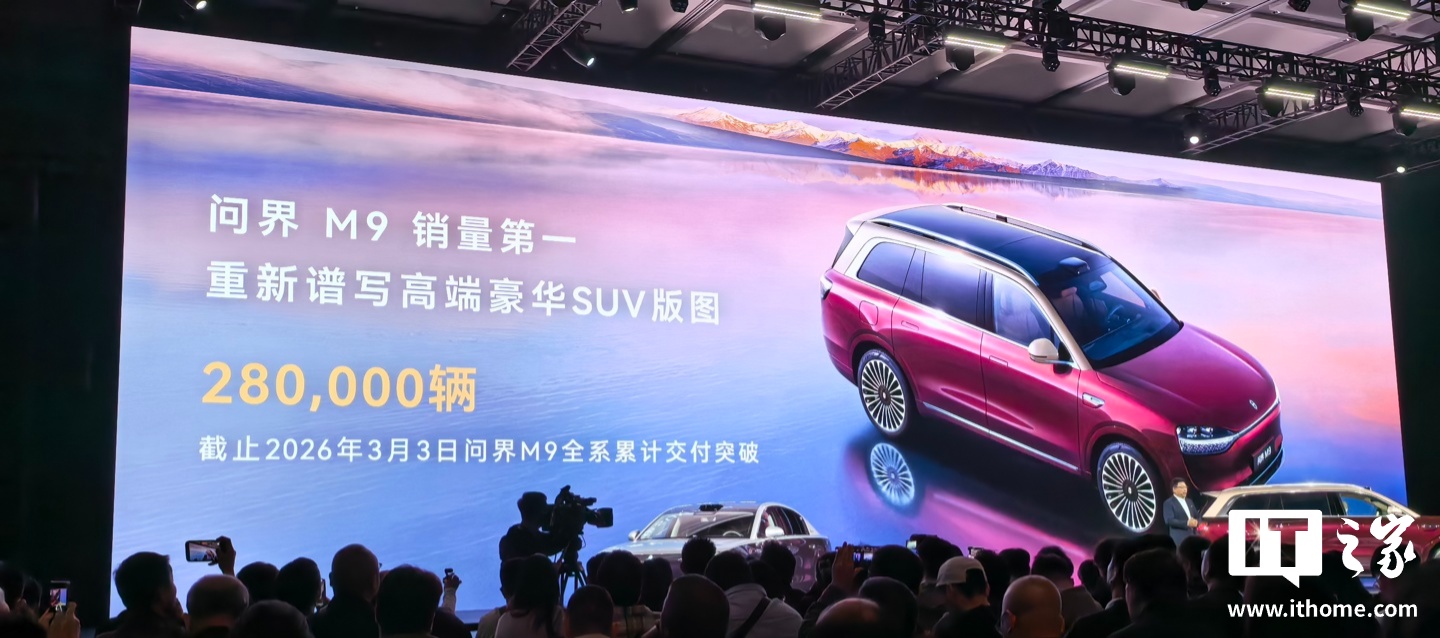 3月4日,华为常务董事余承东在鸿蒙智行技术焕新发布会上宣布,问界M9销量位居高端豪华SUV市场第一,累计交付量突破280,000辆。数据显示,2024年1月至2026年1月,问界M9累计上险量超过27万辆,超越宝马X5、宝马X7、奔驰GLE、奔驰GLS等竞品。鸿蒙智行2026年2月交付量达28,212辆,同比增长31%,历史累计交付量突破128.2万辆。