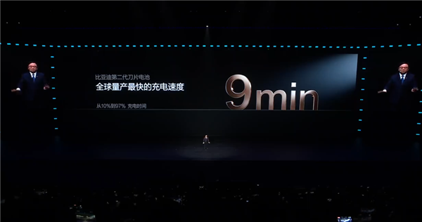 电池及闪充技术。比亚迪董事长王传福表示,这项技术将彻底解决电动车充电慢和低温充电时间长的问题。第二代刀片电池的充电速度显著提升,从10%充至70%仅需5分钟,从10%充至97%只需9分钟,创下全球量产最快的充电速度记录。在哈尔滨-20℃的极寒条件下,从20%充到97%也只需12分钟。