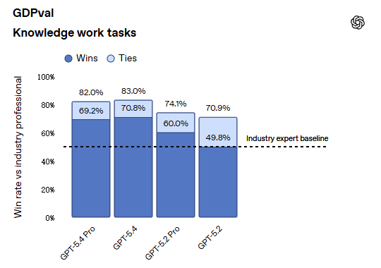 GPT-5.4系列模型在专业工作领域实现突破,83.0%的项目上达到或超过行业专业水平,相比前代GPT-5.2的70.9%有显著提升。在减少错误方面,GPT-5.4的错误率降低33%,完整回答中出现任一错误的可能性降低18%。此外,GPT-5.4在计算机使用基准测试中表现优异,成功率达75.0%,超过人类表现的72.4%。视觉感知能力方面,GPT-5.4在MMMU-Pro视觉理解与推理测试中取得81.2%的成功率。