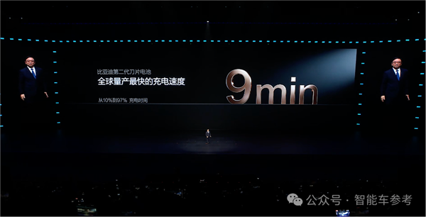 电池和1.5兆瓦闪充技术,标志着汽车工业革命电动化上半场的结束。比亚迪的二代刀片电池在容量上实现显著提升,以腾势Z9GT为例,电池包容量从100度增加到120度,续航从600km增加到1036km,创下全球纯电续航最高量产车纪录。同时,比亚迪的闪充技术实现10%-70%充电时间仅需5分钟,10%-97%充电时间9分钟,极大提升了电动车的充电效率。