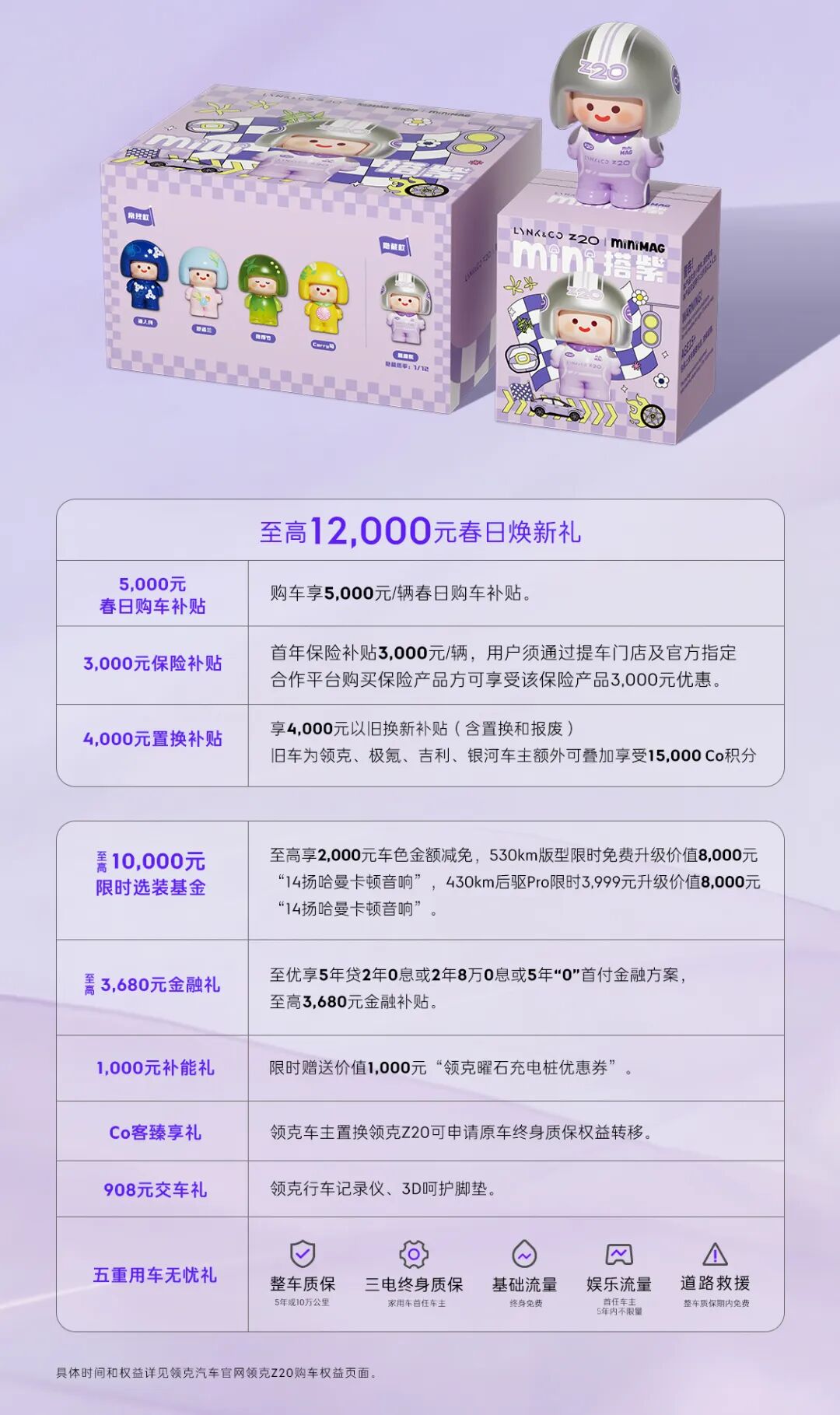 今日,领克汽车推出了Z20纯电SUV的新外观版本“马德拉紫”,灵感来源于大西洋马德拉岛的薰衣草,限时售价为10.99万元起。此次上新,领克Z20提供了包括联名手办盲盒、5000元购车补贴、3000元保险