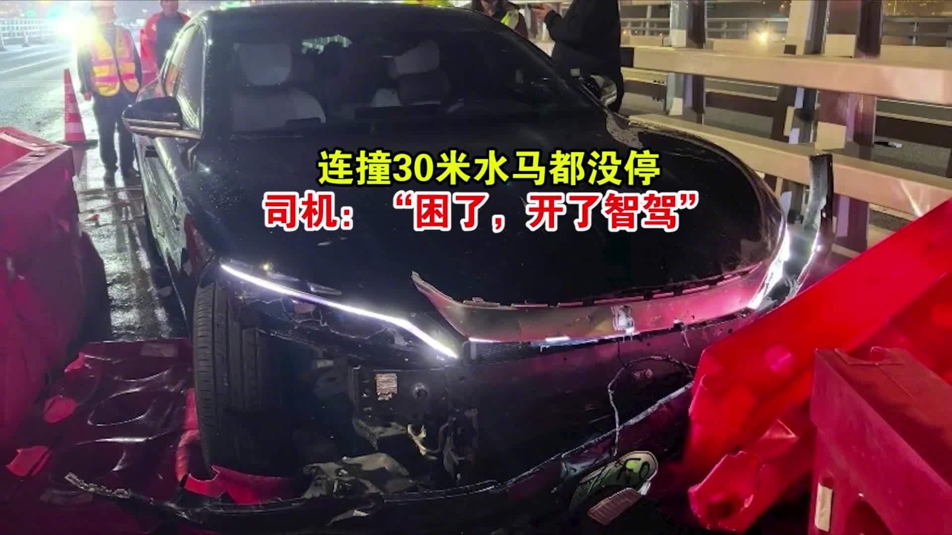3月5日晚,武汉绕城高速发生一起交通事故,司机谢某在快车道上以接近100公里的时速驾车冲入施工区域,撞飞30米长的隔离水马后,最终撞上方向指示牌停下。幸运的是,事故未造成人员伤亡,仅导致车辆和施工设施受损。行车记录仪显示,车辆在撞击瞬间仅轻微修正方向,随后继续高速冲撞。司机谢某承认,因犯困开启“智驾”功能,事故发生时未能及时接管车辆。