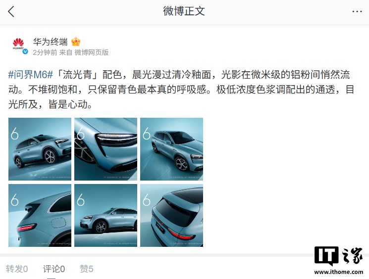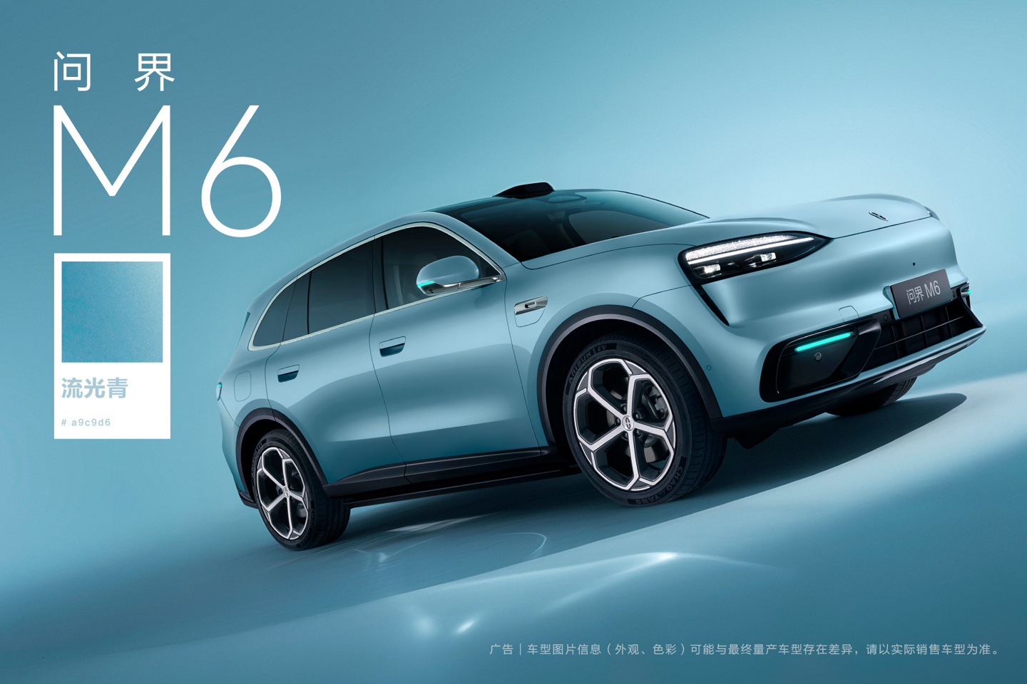 3月7日,鸿蒙智行发布了问界M6的全新「流光青」配色,继「活力橙」配色后,再次丰富了车型的色彩选择。新配色以“晨光漫过清冷釉面”为设计理念,通过微米级铝粉间的光影流动,呈现出青色最本真的呼吸感,与高饱和度的「活力橙」形成鲜明对比,更显通透。