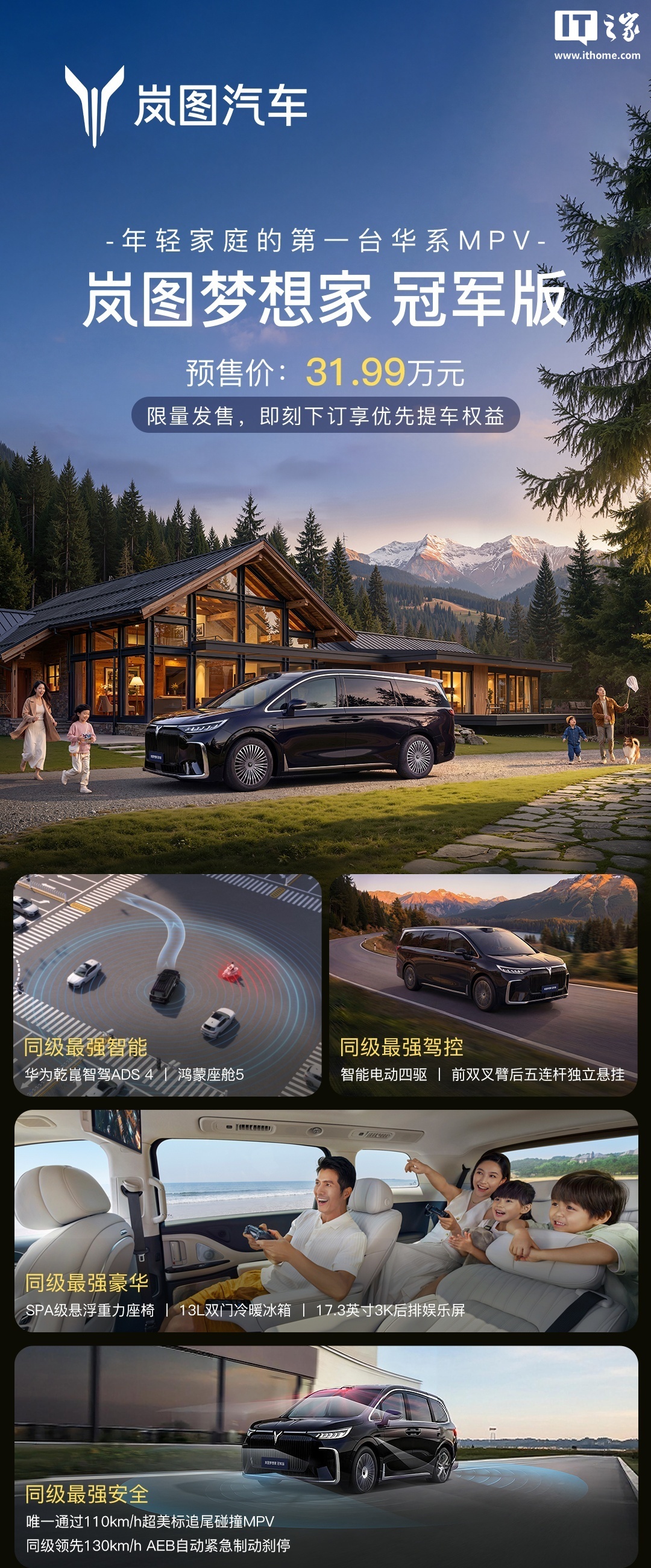 新车核心配置包括华为乾崑智驾ADS4系统及鸿蒙座舱5,号称拥有百万级底盘体验和智能四驱。梦想家冠军版在智能驾驶和座舱体验方面进行了升级,提升了车辆的智能化水平和驾驶体验。此外,新车还延续了梦想家系列的高端定位和豪华配置,满足消费者对高端新能源MPV的需求。随着第20万辆车的下线,岚图梦想家系列的市场影响力和品牌认知度有望进一步提升。