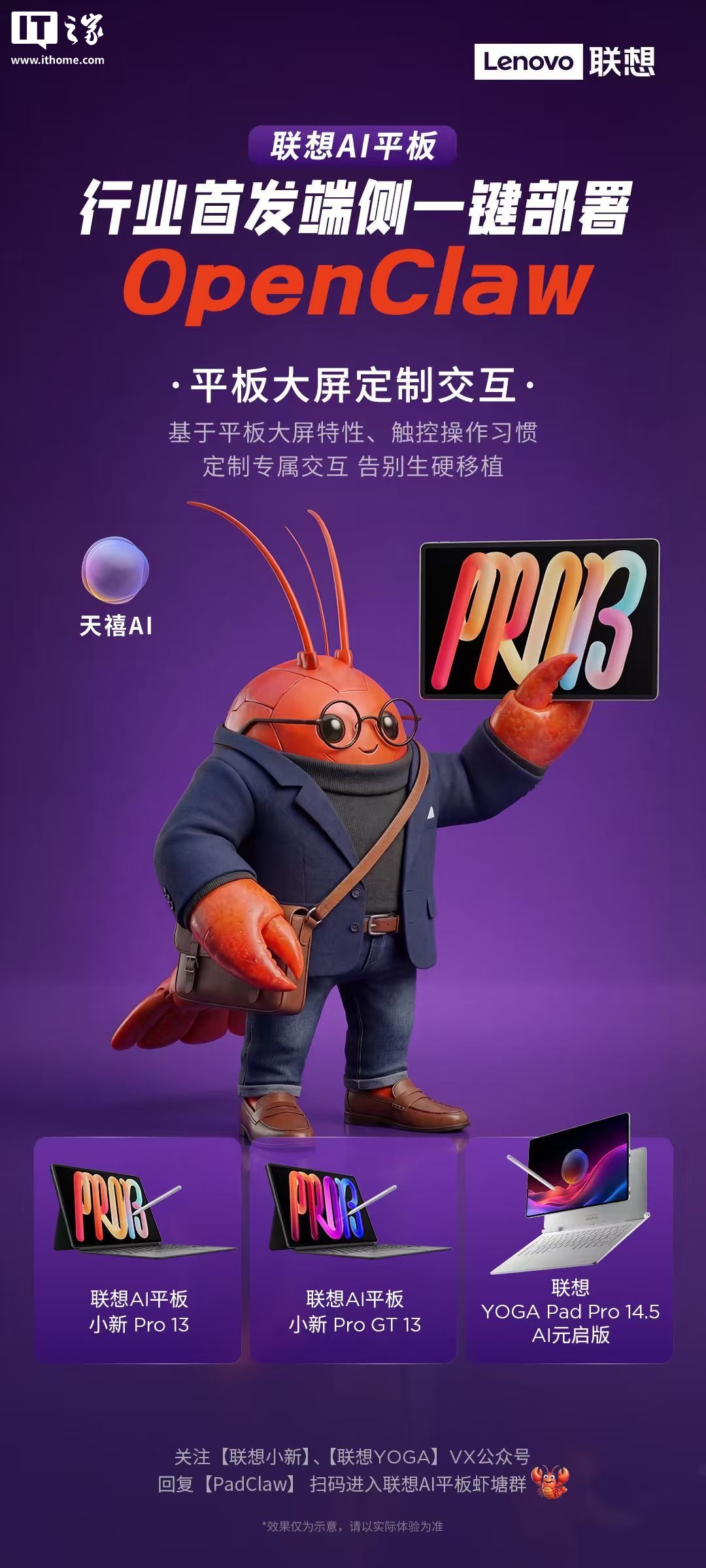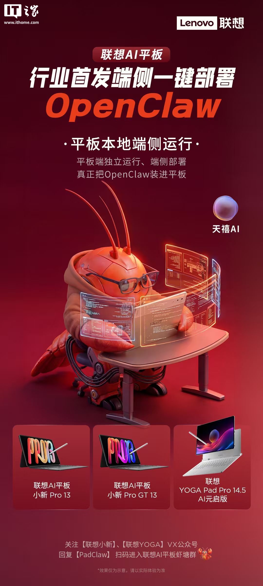 今日,联想小新宣布将推出行业首款端侧一键部署OpenClaw的AI平板,适配包括联想AI平板小新Pro13、联想AI平板小新ProGT13、联想YOGAPadPro14.5AI元启版在内的多款产品。联想AI平板PadClaw的首发优势包括平板本地端侧运行、大屏定制交互、一键部署学习场景以及定制Skill等特性,旨在提升用户体验和操作便捷性。