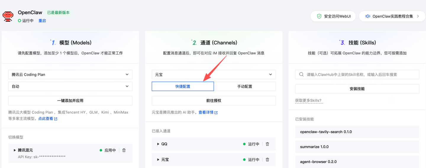 具体来说,用户可以在已有的OpenClaw前端对话界面中复制粘贴运行命令,预计20秒后执行成功即可迎虾进派。通道配置接入则需要用户复制页面中的AppID和AppSecret,绑定元宝通道。对于通过腾讯云Lighthouse部署OpenClaw的用户,还可以选择“快捷配置”进行扫码绑定,这一过程更为便捷。