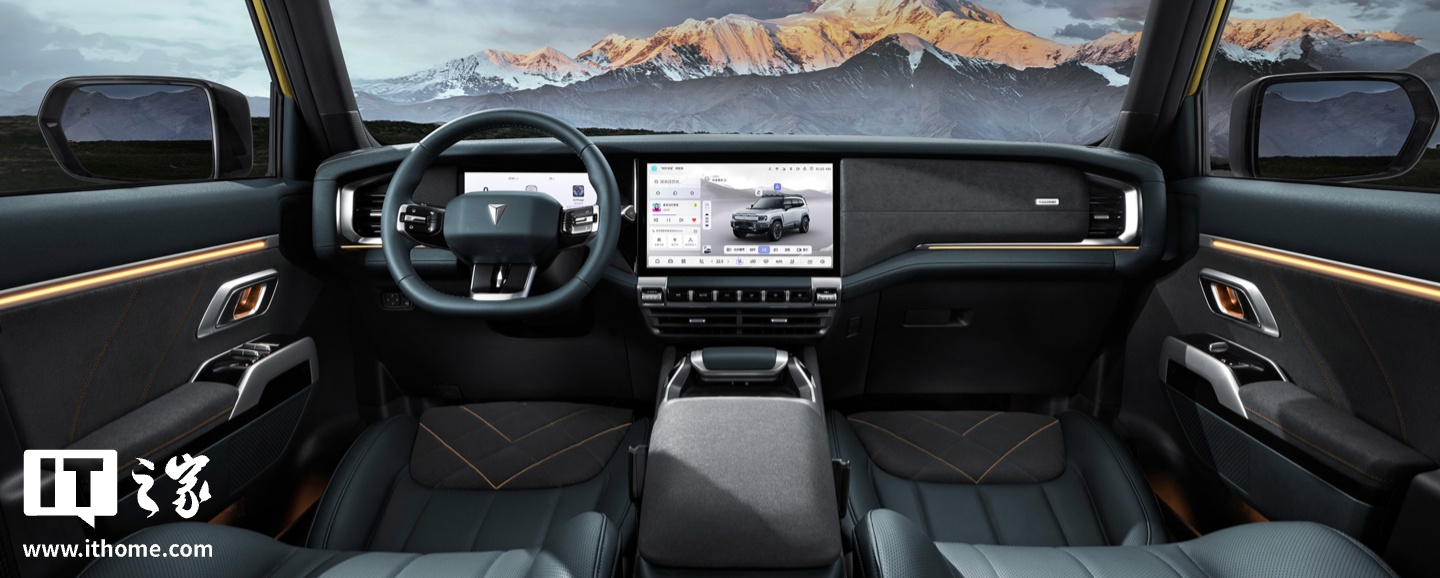四驱旷野版整体造型与两驱版基本一致,仅提供峡谷黑一款专属车身配色。车辆配备规格为255/65R18的轮圈,搭载后通风制动盘。内饰方面,取消了方向盘加热与座椅记忆功能,新增涉水感应系统,强化户外通过性。车身尺寸为5125x2025x1895mm,轴距2880mm,接近角30度,离去角32度。