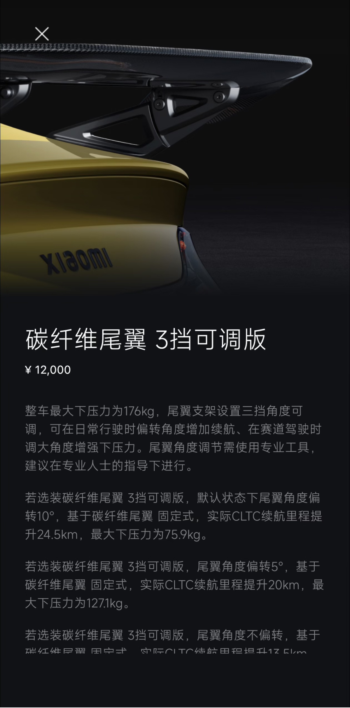 3月28日,小米SU7Ultra车型迎来了新的外观升级。该车型新增了暮光玫瑰车漆和三档可调碳纤维尾翼,选装价格分别为11000元和12000元。用户现在可以通过小米汽车App了解更多详情。