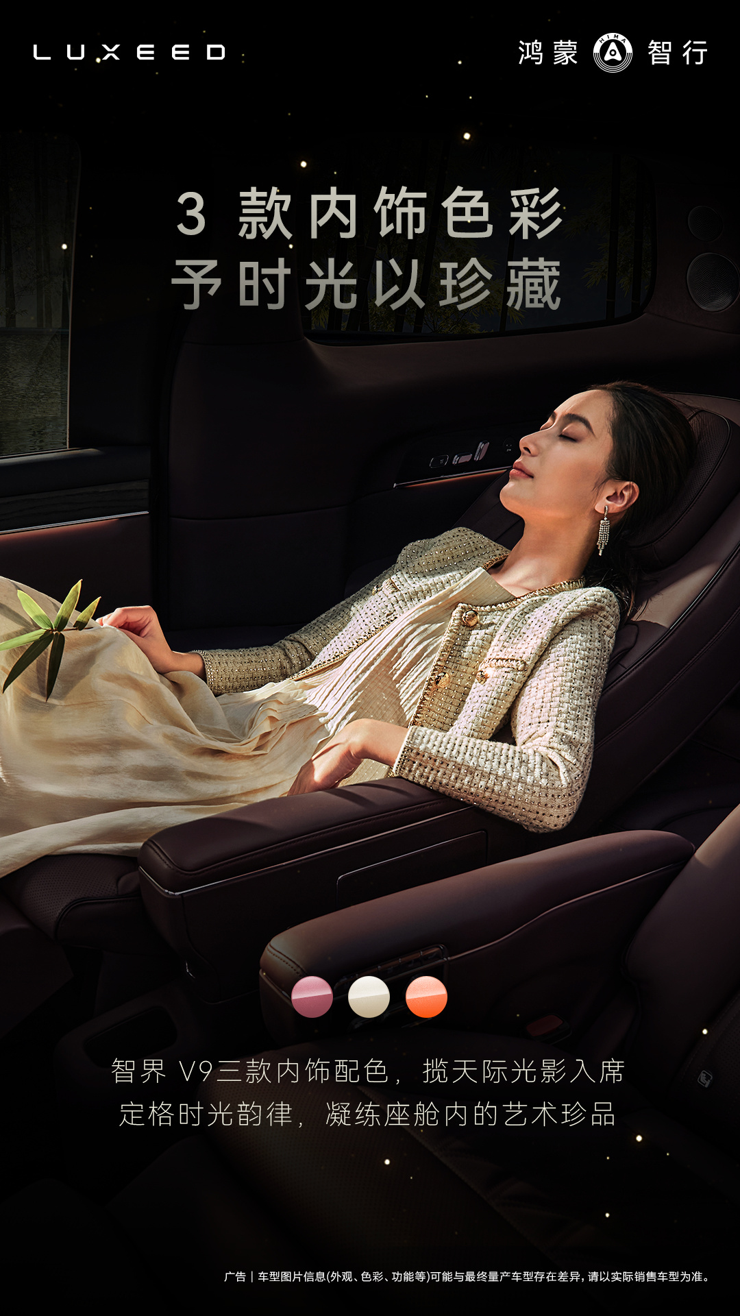 今日,智界汽车宣布其旗舰MPV车型智界V9将提供绒霞紫、韶华杏、赤茶橘三款内饰配色。智界V9采用一体式横向贯穿屏幕设计,中控台下方配备水晶旋钮,并选用NAPPA头层真皮材质,搭载HUAWEISOUND音响系统。二排座椅支持一键联动调节,可实现靠背、腿托、脚踏的协同控制,提供长达1.05米的腿部支撑空间。座椅功能方面,智界V9配备二排旋转座椅,支持多种模式切换,兼顾商务接待与家庭出行需求。