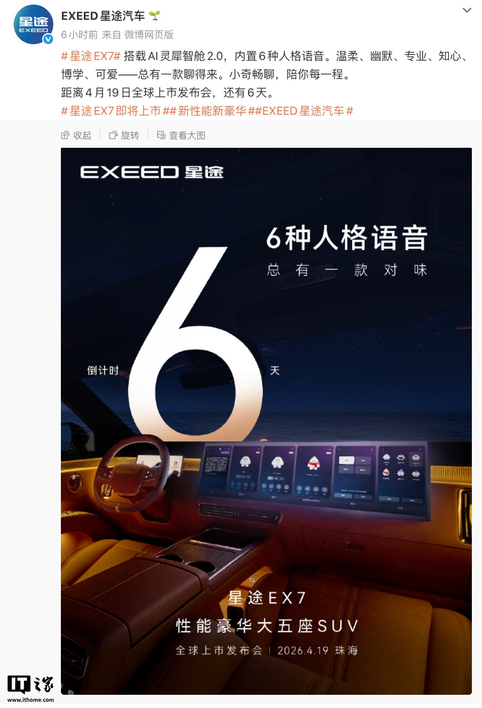 4月13日,奇瑞汽车宣布旗下星途EX7 SUV的上市时间调整至4月19日。这款新车搭载AI灵犀智舱2.0系统,并提供增程和纯电两种动力选择。EX7 SUV首次搭载了航空级纯机电线控制动系统(EMB),消费者支付999元订金即可抵扣2999元购车款。