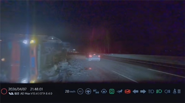 4月7日晚21时,理想汽车产品线负责人“@老汤哥”转发了一段视频,展示了理想AEB(自动紧急制动系统)在实际驾驶中避免追尾事故的案例。涉事车辆配备了理想ADMaxV13.4辅助驾驶功能,当时车主开启了理想NOA(导航辅助驾驶)。车辆以120km/h的速度行驶,在准备超越慢行车时,前方超车道内出现了一辆侧翻的大货车。由于货车事故后车头翻转且车灯开着,导致眩光影响视线,难以及时发现事故车辆。在接近事故货车时,理想AEB功能及时生效,紧急刹车降速,车主随后接管变道,成功避免了追尾。