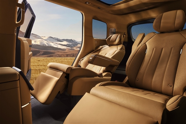 4月14日,小鹏汽车发布了旗舰车型GX的内饰官图。新车内饰以“光韵乌托邦”为设计理念,采用2+2+2独立六座布局,配备全场景智能座舱和头等舱级舒适配置。中控台采用极简设计,搭载大英寸超窄边中控屏,仪表盘和AR-HUD功能。方向盘左右按键区下方各增加一个独立按钮,预计与辅助驾驶功能相关。中控岛台提供手机无线充电区域和两个杯托,下方为超大储物空间。座椅方面,第二排配备零重力航空座椅,第三排配备独立头枕,支持纯平放倒。二排前方配备吸顶式娱乐屏,车顶布置空调出风口。