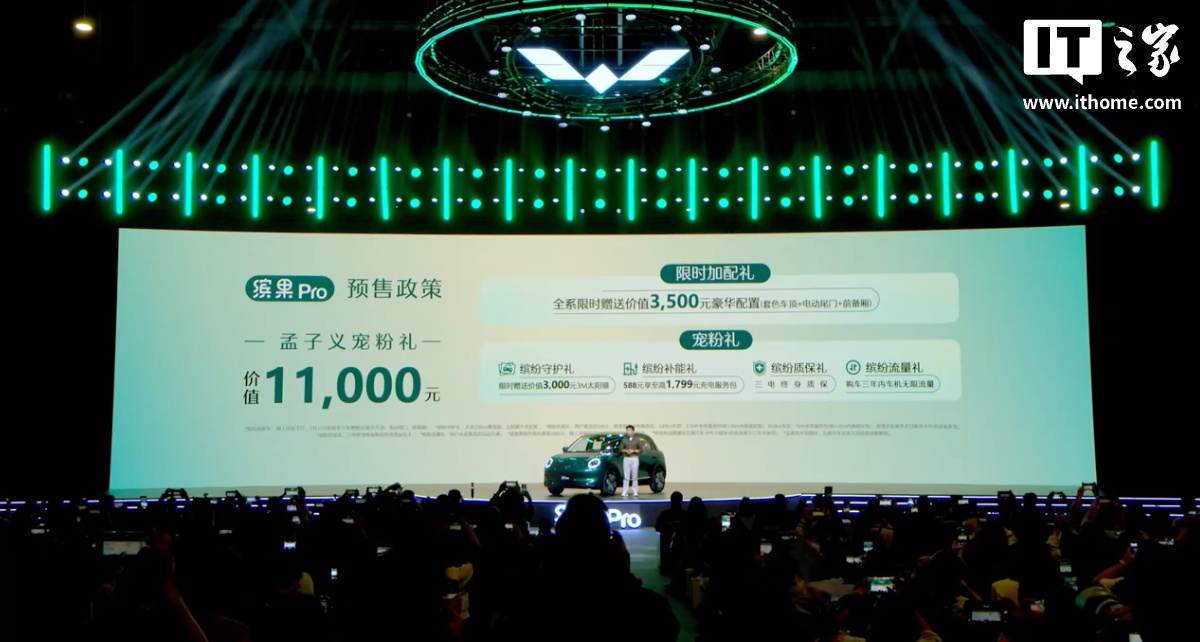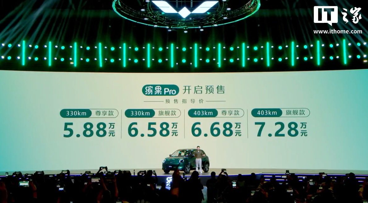 4月14日,五菱汽车在发布会上宣布,旗下全新一代缤果—缤果Pro正式开启预售。这款定位为“精致缤纷座驾”的新能源汽车,预售价从5.88万元起。缤果Pro以其“新复古主义美学”为核心设计语言,推出了赫本绿、漫游银、松弛灰、放空白四款摩登晶彩车色,并采用同级唯一的八涂层工艺。车辆配置了飞环流光大灯、半隐藏式门把手、复古尾翼以及红宝石质感矩光尾灯,座舱内搭载了大尺寸“水韵浮岛”悬浮式中控屏、双辐多功能方向盘和50W手机无线充电功能,内置灵语智能系统,支持语音控制。