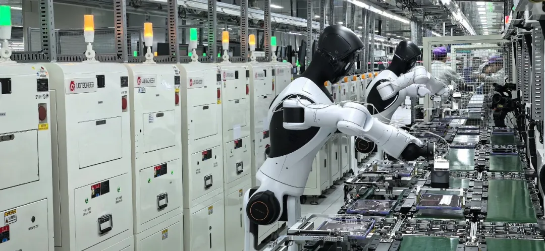 智元机器人的精灵G2展现了自适应精准操作的能力,能够自动适应产线动态扰动与位置偏差,智能分拣不良品,并与工厂MES系统、测试设备实时数据互通,支持7×24小时不间断双班运行,无需人工干预即可持续稳定生产。与传统机械臂相比,精灵G2在泛化能力、部署速度与柔性化上具有显著优势,无需定制专用工装即可适配多型号平板产品;场景标定最快15分钟完成,产线换型重训不超过4小时,设备复用率达95%。