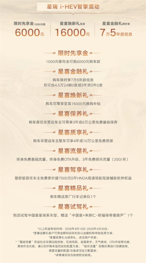 4月20日,吉利汽车宣布星瑞i-HEV智擎混动车型开启预售,推出3款车型,预售价区间为10.77-11.97万元,限时指导价为10.27-11.47万元。新车在设计上延续了燃油版的风格,前脸采用更大的“丝路峰峦”进气格栅,车身线条流畅,车尾造型简约大气。车身尺寸为4825/1869/1469mm,轴距达2800mm。内饰方面,新车配备10.2英寸全液晶仪表和14.6英寸中控屏,搭载FlymeAuto智能座舱系统,内置高通骁龙8155芯片,支持多种互联系统。