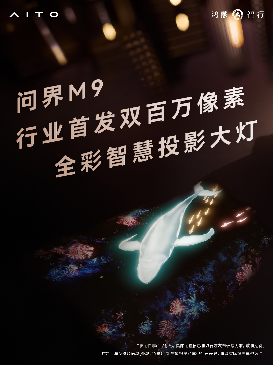 4月20日,AITO汽车官方微博宣布,全新一代问界M9系列汽车将行业首发双百万像素全彩智慧投影大灯、手握祥云创新门把手设计、创新一镜双投影院等配置。这些创新配置将为驾驶者和乘客带来全新的体验。问界M9系列在外观上也有所升级,包括全新一代智慧投影大灯、全新一体贯穿灯、全新半隐藏式门把手、全新大饼轮毂+悬浮LOGO等。