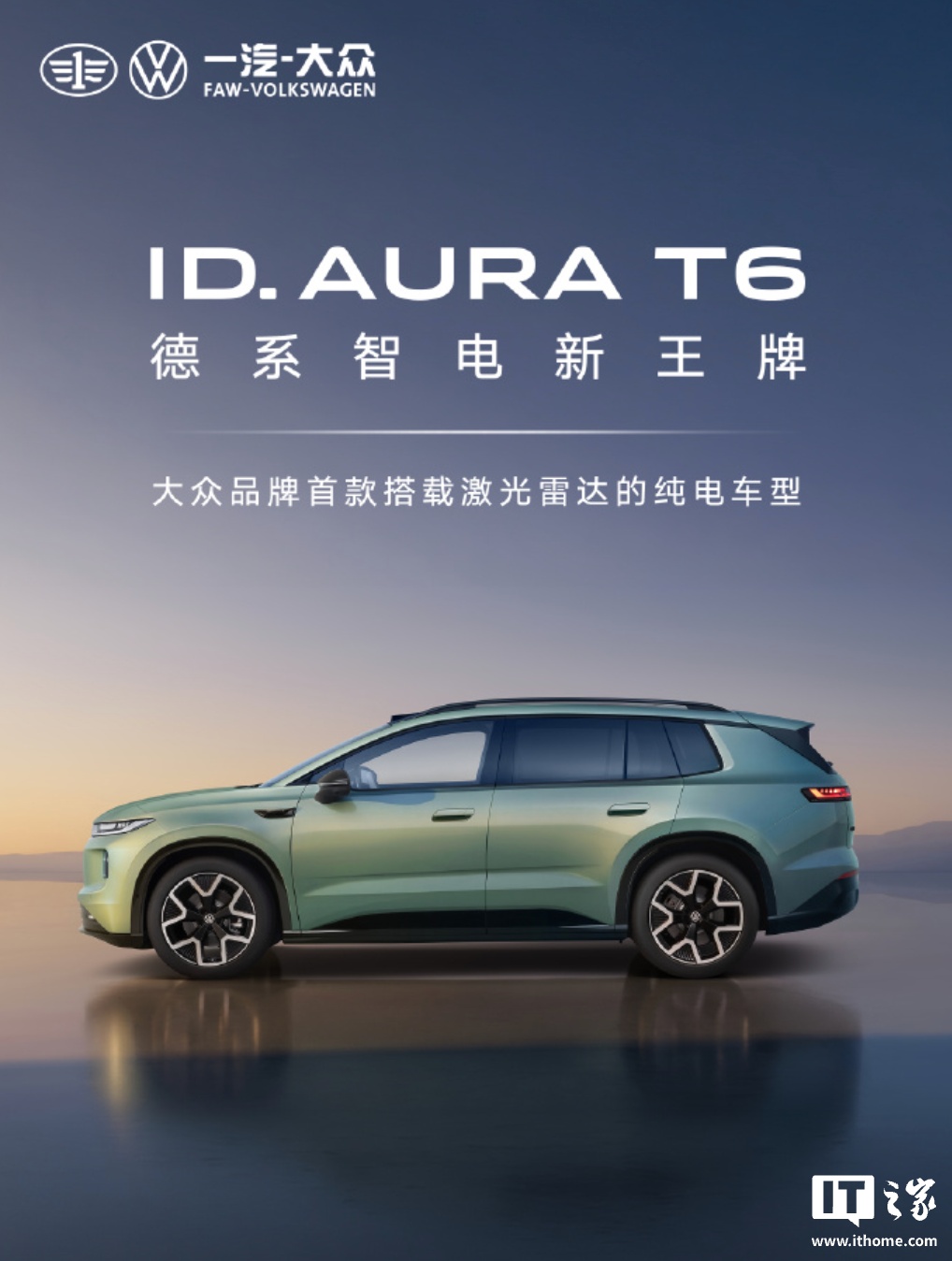 4月21日,一汽-大众在大众汽车集团媒体之夜上发布了ID.AURA序列的首款车型ID.AURAT6。这款全新五座中型SUV基于全新CEA电子电气架构打造,采用“实用自然主义美学”设计理念,车头配备方形灯组,侧面采用半隐藏式门把手,并匹配高亮黑轮眉。ID.AURAT6集成了激光雷达、驾驶辅助小蓝灯与摄像头,是大众首款搭载激光雷达的纯电SUV。该车将搭载大众汽车集团与地平线合资成立的酷睿程打造的全新高端智能驾驶辅助系统,拥有同级领先算力,更懂中国路况。