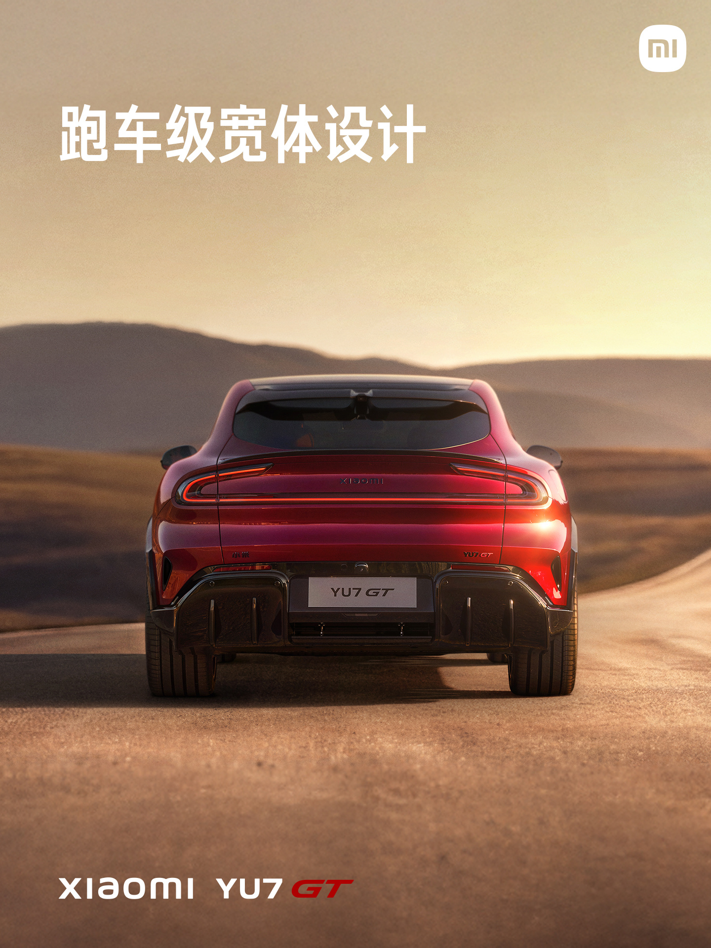 小米YU7GT在外观上延续了YU7的造型设计,前脸为家族式设计,配备“水滴大灯”和镂空式设计。车辆侧面采用低风阻设计,有无边框外后视镜和电动内翻门把手。车尾部分,新车延续了小米SU7的经典设计,包括动感的小鸭尾和辨识度高的“光环尾灯”。此外,新车还配备了空气悬架、主动行驶稳定系统、后轴扭矩矢量分配及先进的牵引力控制系统,以及Brembo碳陶刹车,确保高速行驶中的制动性能与安全性。