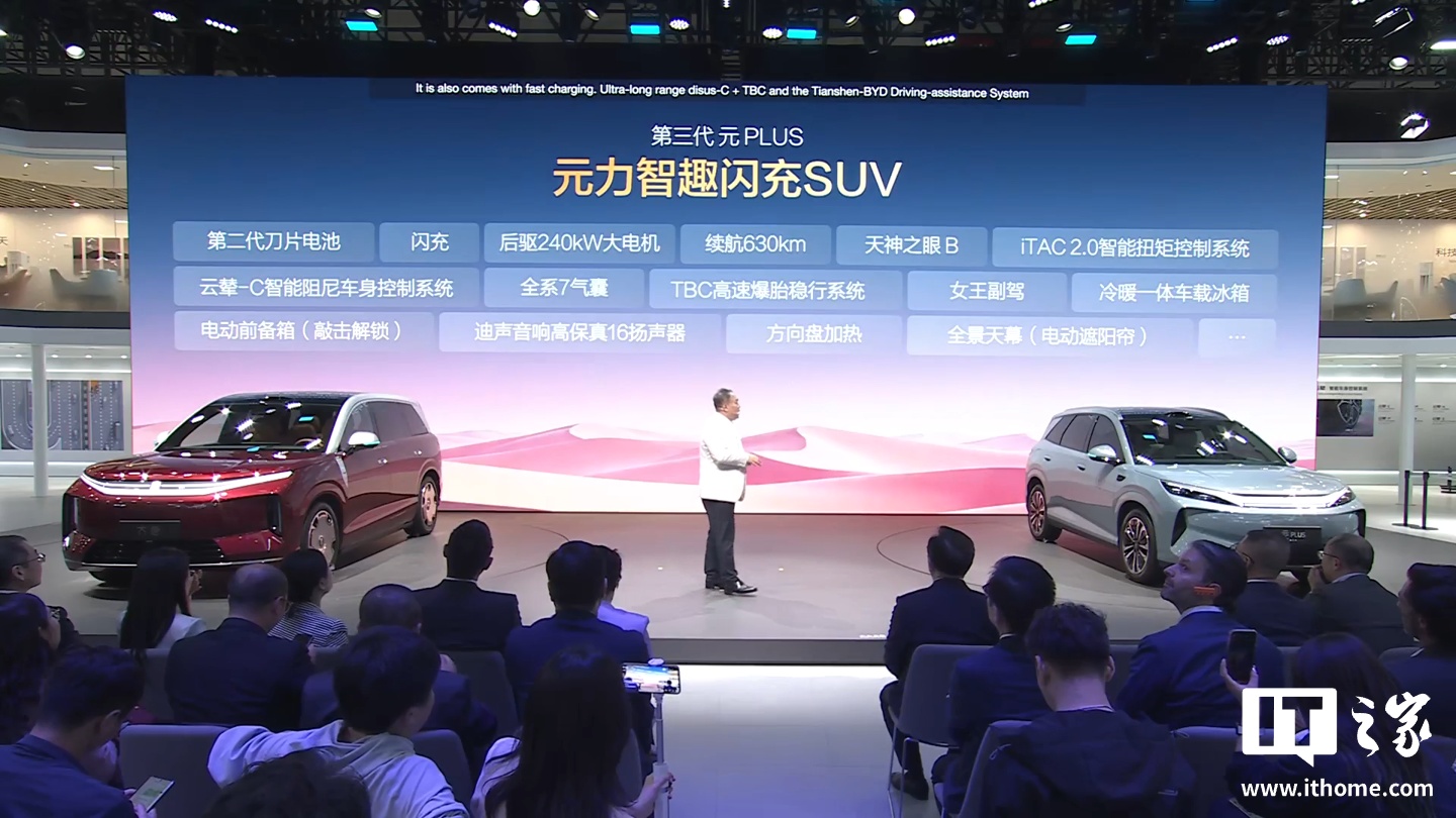 今日,比亚迪第三代元PLUS在发布会上正式亮相,新车定位为A级纯电SUV,提供6种颜色选择。第三代元PLUS在外观和内饰方面进行了全面焕新,配备了新的烟雨灰内饰、电子怀挡、16扬声器,并且拥有冷暖冰箱、电动前备箱等配置。此外,比亚迪还宣布推出小马宝莉联名痛车,进一步丰富产品线。