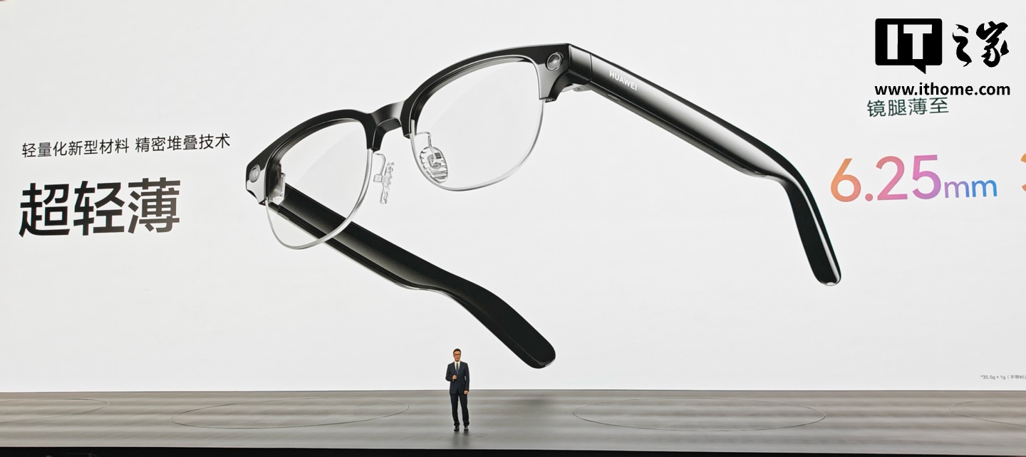 今日,华为AI眼镜正式开售,提供钛银灰、流光银、摩登黑三款配色,圆形、方形两种镜框样式。钛银灰及摩登黑售价为2499元,流光银售价2899元。华为AI眼镜采用轻量化新型材料和精密堆叠技术,镜腿薄至6.25毫米,镜架轻至35.5克,接近普通眼镜重量。内置华为自研AI眼镜芯片,支持语音唤醒、AI快捷键一键唤醒,功能上支持小艺看世界、支付宝看一下支付等。拍摄方面,配备1/2.8''大底传感器,支持AI构图智能矫正、第一人称视角视频直播。同时推出华为眼镜App,支持快速配对连接、智慧播报、自动导入、手表协同等功能。续航方面,综合续航可达12小时,支持连续8小时语音通话、连续9小时音乐播放。