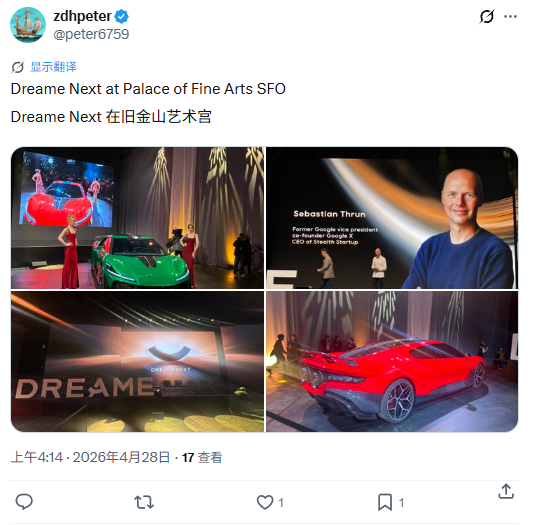 4月27日,追觅在美国举办DREAMENEXT全球发布会,全球首发全新一代“火箭车”NebulaNext01JETEdition。该车型基于概念车NebulaNext01加装助推器,搭载“双固体火箭助推器”,实现150毫秒极速响应和100千牛最大推力,百公里加速仅需0.9秒,远超