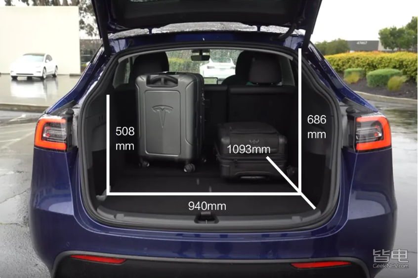 前舱储物空间目测和Model 3没有太大差距,但是后备箱喜提隐藏式储物格一枚,放个登机箱还是足够的。