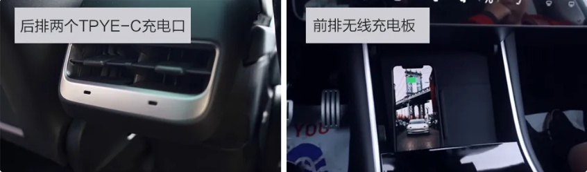 Model Y的平均配置要略高于Model 3,例如前后排座椅标配了加热功能,扬声器数量相比国产Model 3略多(14个扬声器、1个低音炮、2个功放),手机储物格不再需要接线,进化为1个15W无线充电,当然两个USB接口依旧得到了保留。
